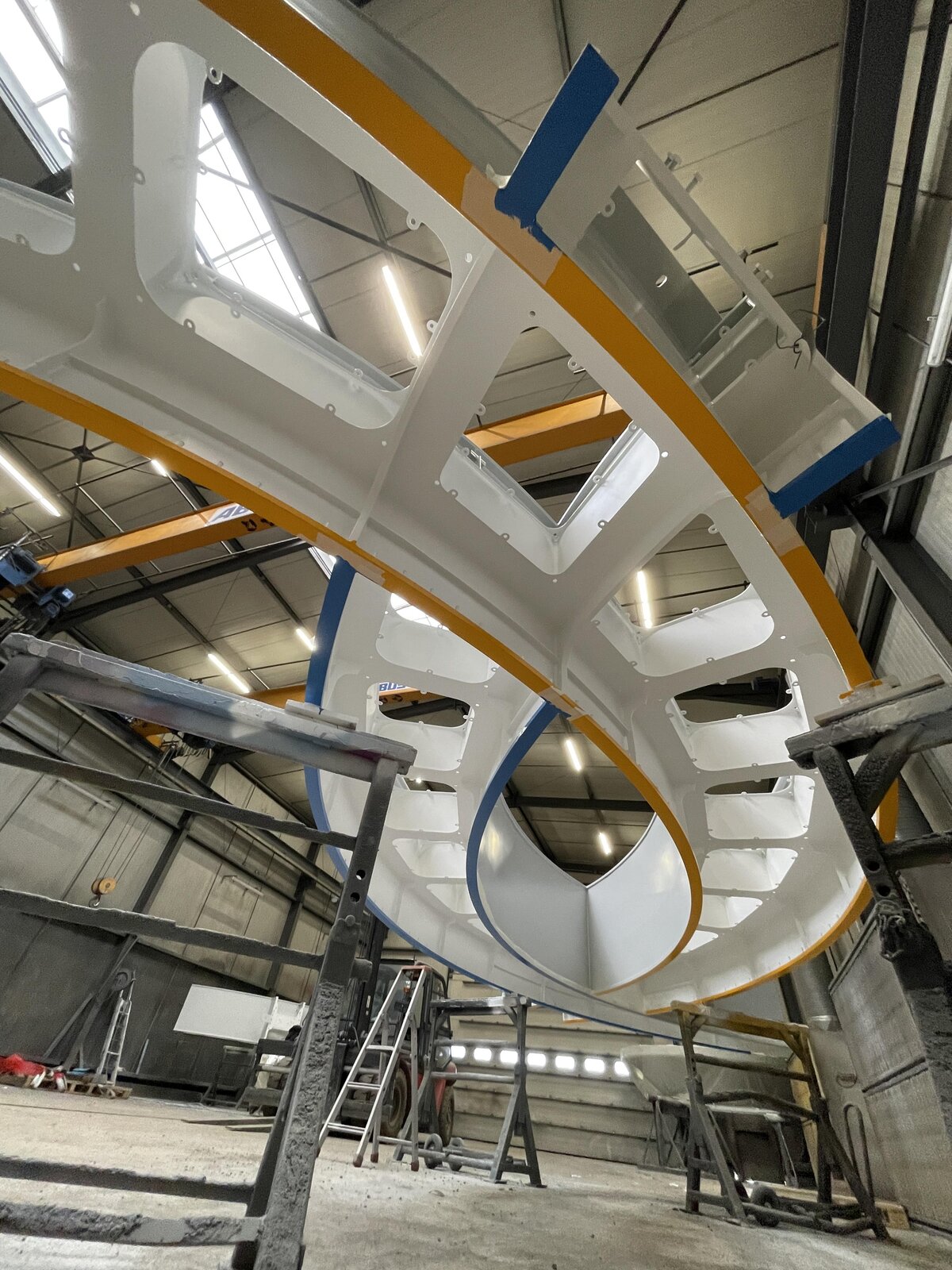 Do zakładów Chiarizia dostarczono 11 segmentów o wymiarach 8 × 3 m każdy, przy czym masa pojedynczego elementu wynosiła od 1,4 do 3,5 tony. Po montażu cała instalacja osiągnęła imponujące rozmiary: 29 metrów szerokości i 13 metrów wysokości.