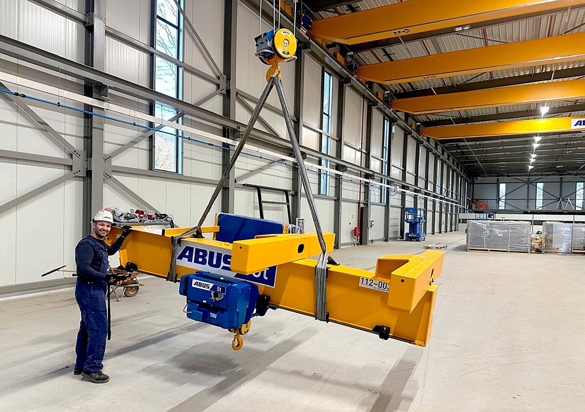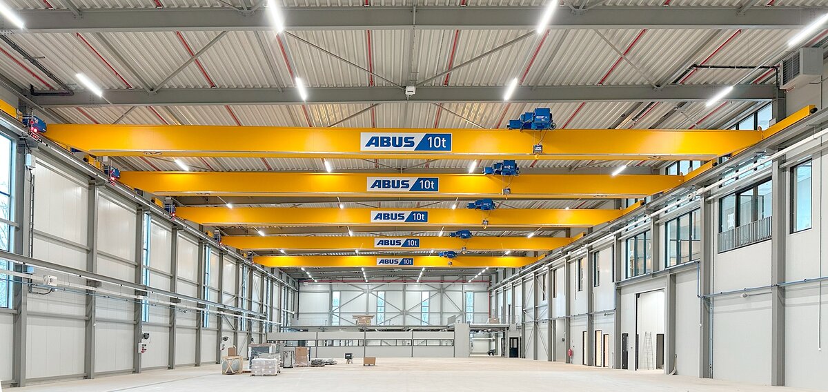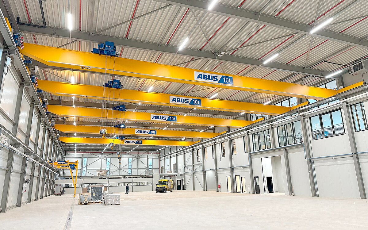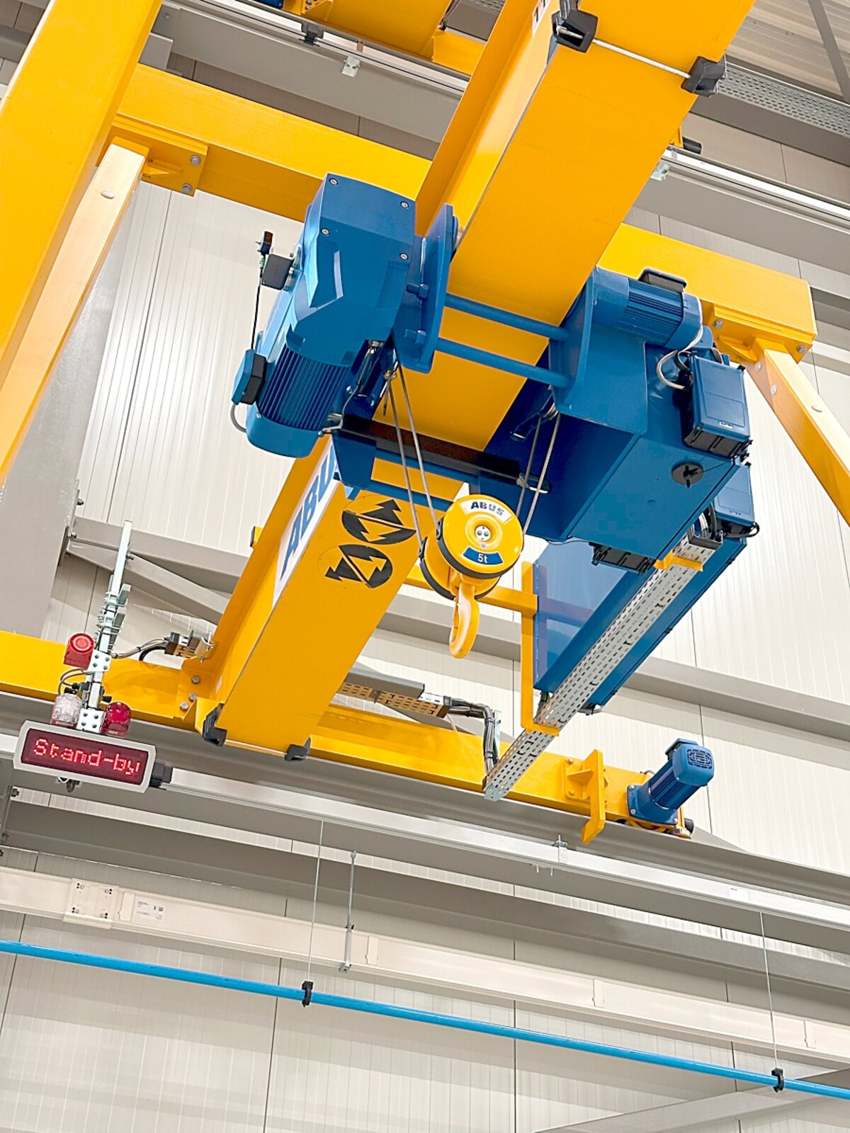 W halach montażowych wykorzystywane są dźwignice firmy ABUS, niezbędne do przemieszczania i precyzyjnego pozycjonowania ciężkich, złożonych komponentów. Dzięki rozpiętości niemal 28 metrów, pięć suwnic jednodźwigarowych zapewnia dostęp do wszystkich obszarów hali. Takie rozwiązanie zwiększa wydajność i skraca czas produkcji. Dodatkową elastyczność zapewniają suwnice pół-bramowe, które idealnie sprawdzają się podczas precyzyjnych prac montażowych – na przykład przy składaniu pociągów i złożonych systemów mechanicznych.